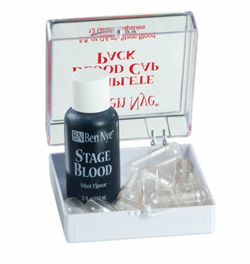 Ben Nye’s Blood Cap Pack is perfect for Halloween and Special FX effects. The blood will ease from the mouth with realistic effect. The soft gelatine capsules rupture when bitten down on.