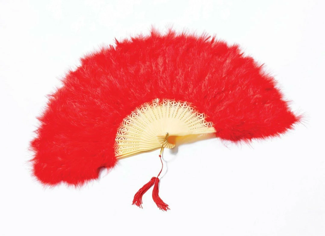 Feather fan in red. The perfect finishing touch to any 1920’s costume.