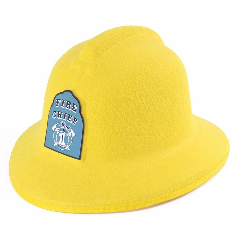 Yellow Felt Fireman Helmet with Fire Chief Badge.Â