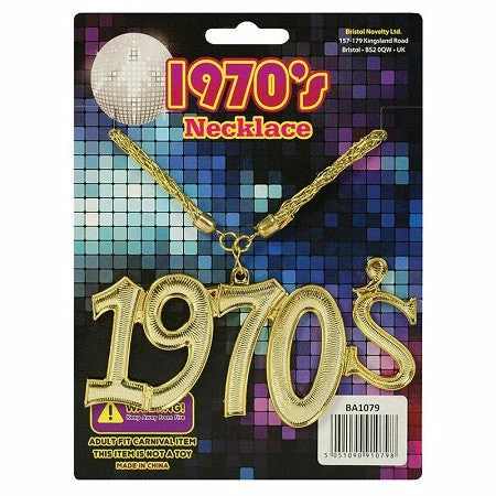 This gold effect 1970s necklace is the perfect finishing touch to your 70’s outfit.