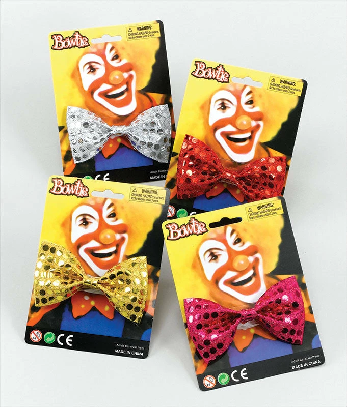 Available in 5 colours, gold, pink, red, black and silver, our sequin bow tie will complement your clown costume.