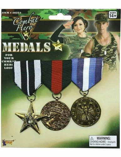 Three medals on one large pin to complete your combat hero look.