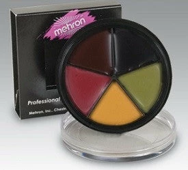 Our ProColoRing, from Mehron, contains the colours needed to create bruises from the initial red of a fresh bruise to the change to Maroon then finally the yellowish-blue-green of a healing bruise.