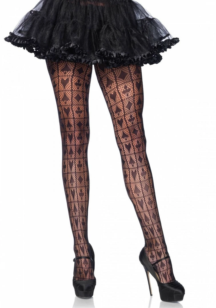 Leg Avenue, Card Shark Checkerboard net tights with reinforced toe and elastic waistband.