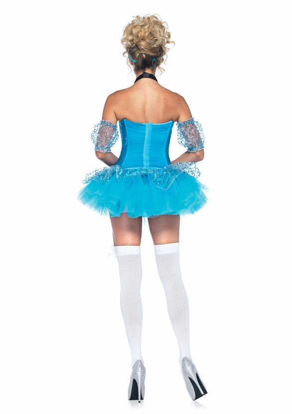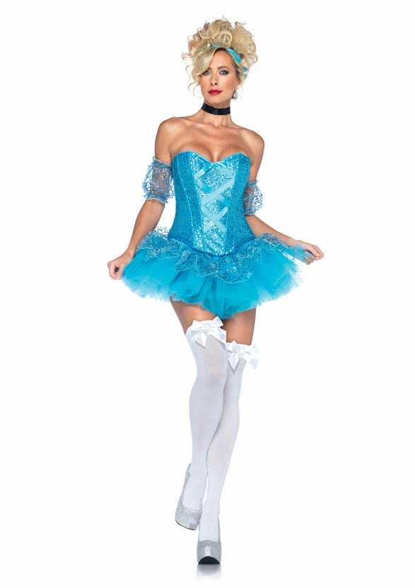 Our Leg Avenue Cinderella 5 piece fancy dress costume features a sequin corset, tutu skirt, arm puffs, choker and headband.