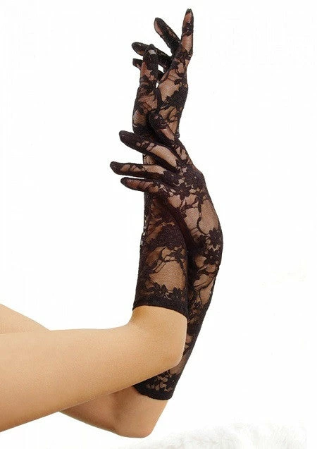 Our leg avenue elbow length stretch lace gloves in black are perfect to add a touch of glamour to your costume.