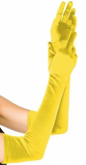 Our leg avenue extra long satin gloves in yellow add the perfect touch to an elegant costume.