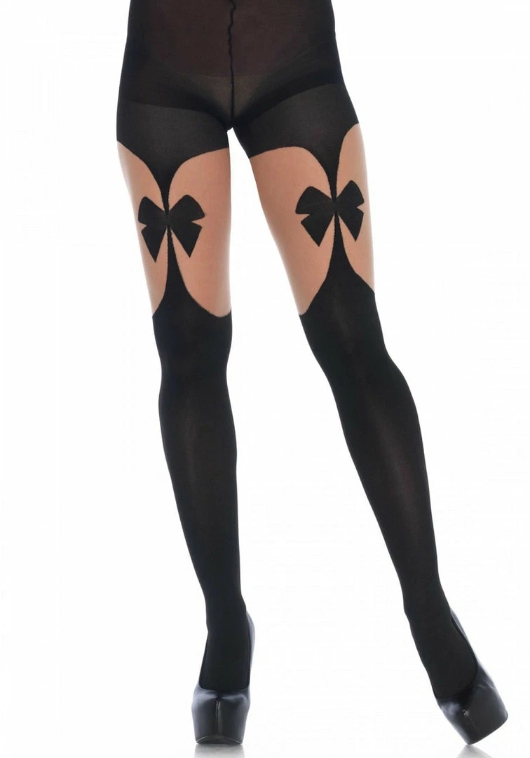Leg Avenue, Opaque illusion garterbelt tights with front and back bow.