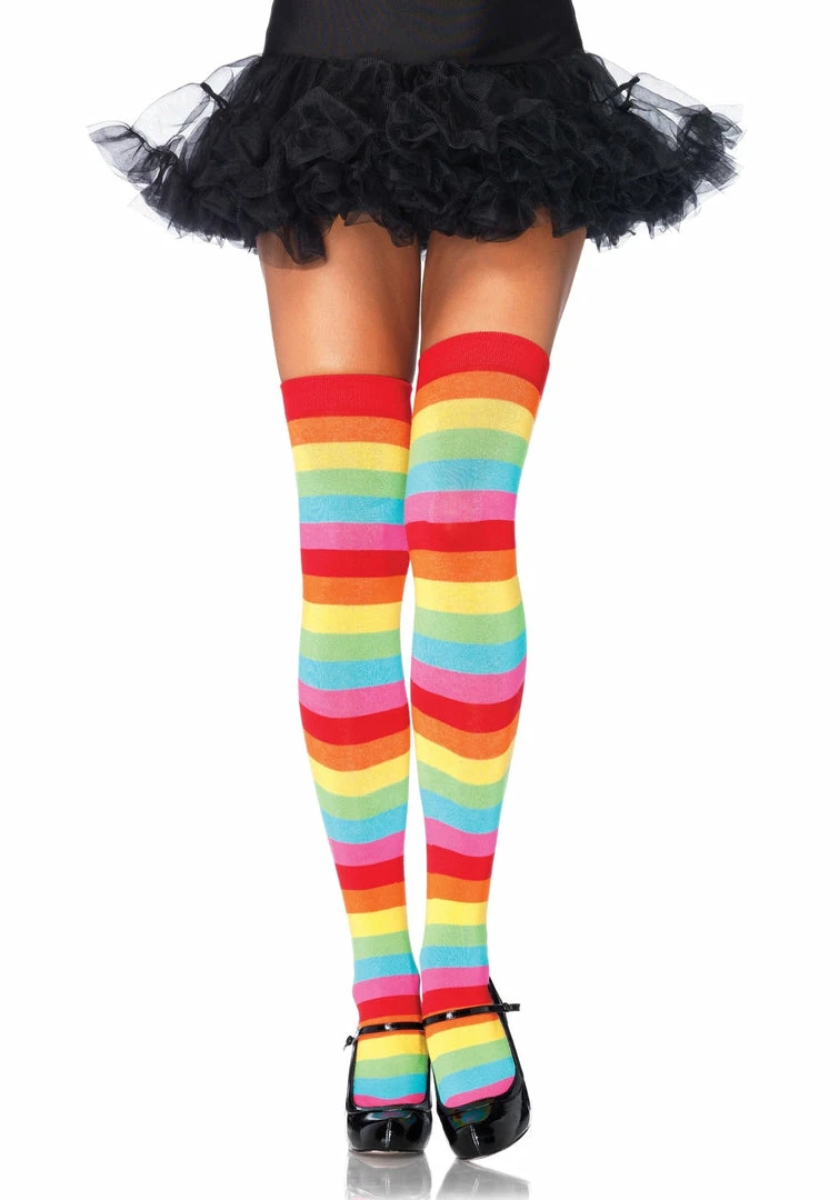 Our Leg Avenue, Rainbow Thigh Highs are great to add a touch of glamour to your costume. One size.
