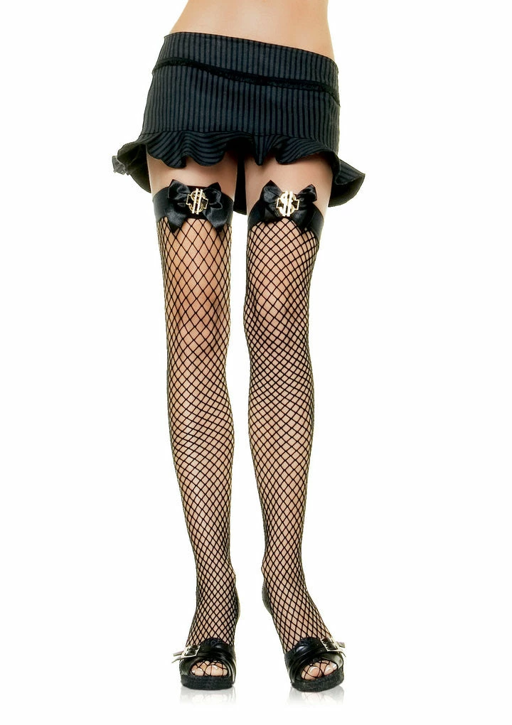 Our Leg Avenue, Industrial Net Thigh Highs With Dollar Sign And Bow Top