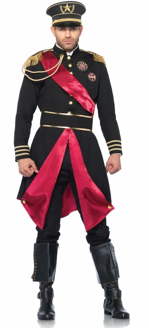 Our Leg Avenue, Military General, includes a jacket with badge accents and belt.