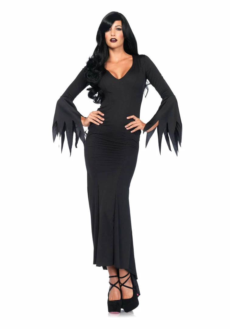 Our Leg Avenue, Mortica Style, Floor length gothic dress is perfect for your spooky halloween outfit.