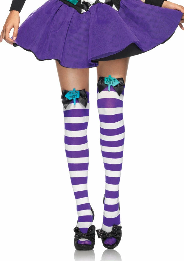 Our Leg Avenue, Mad Hatter with Bows Nylon Thigh Highs are great to add a touch of glamour to your costume. One size.