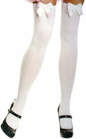 Our Leg Avenue, White Nylon Thigh Highs are great to add a touch of glamour to your costume. One size.