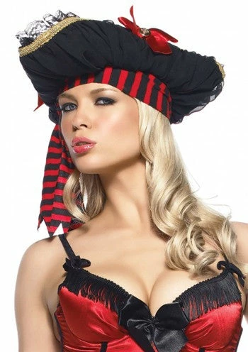 Our Leg Avenue pirate hat with chiffon rushing is perfect to complete any pirate costume.