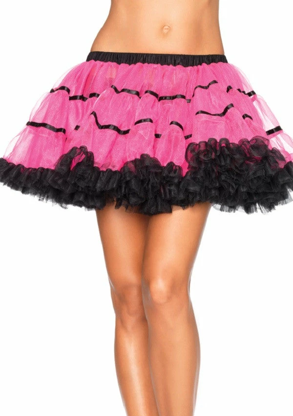 Our Leg Avenue, Layered Satin Petticoat in pink & black is perfect to add the finishing touch to many costumes.