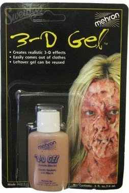 Our Mehron, 3-D Gel Clear is a gelatin-based special effects product for creating realistic skin, scars and prosthetic pieces.