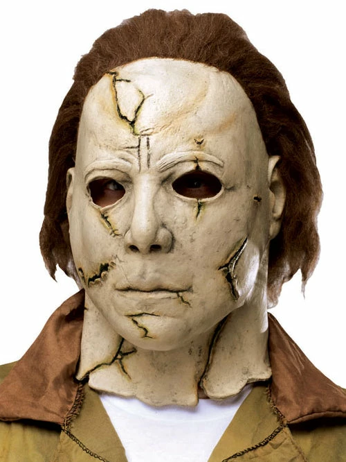 Our Michael Myers, Rob Zombie mask is a sinister full overhead deluxe latex mask with expressionless face and short brown hair attached.