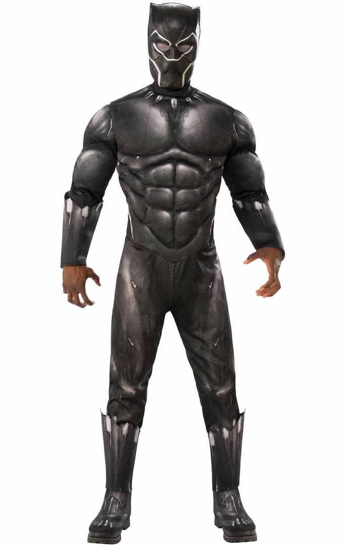 Includes, 3D, Fibre-filled muscle chest jumpsuit and mask.