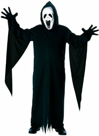 Includes an Injection moulded mask, full cut hooded robe and gloves.