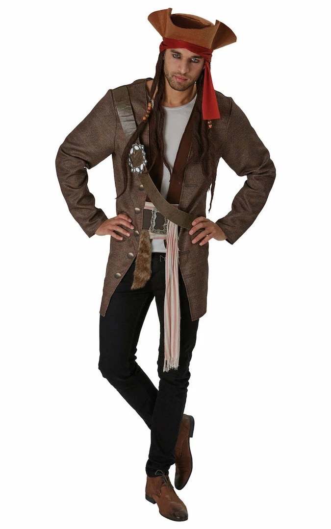 Aspiring Captain Jacks will admire the leather look of his coat and the fine detail of those pirate beads.
