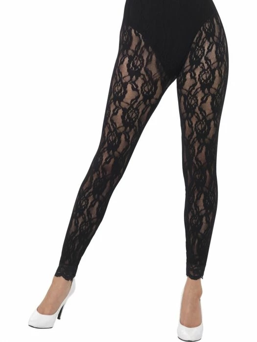 Step back into the 80s with these stylish lace leggings, with floral Design and Scallop Trim.