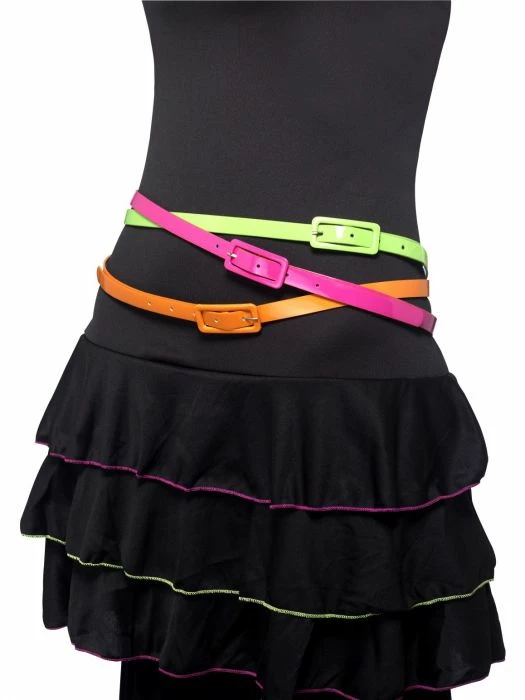 Add a nice little finishing touch to your 1980’s outfit with these Neon Belts, green, orange and pink.