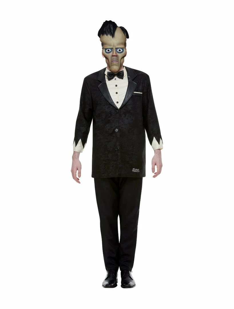 Our Lurch costume includes a blazer style, black top with attached mock shirt, dickie bow tie and official logo printed on chest.