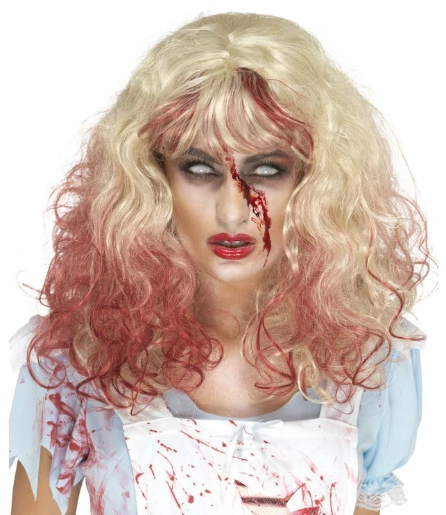 Our Zombie Alice Wig has red blood stained fringe and ends, so effective.