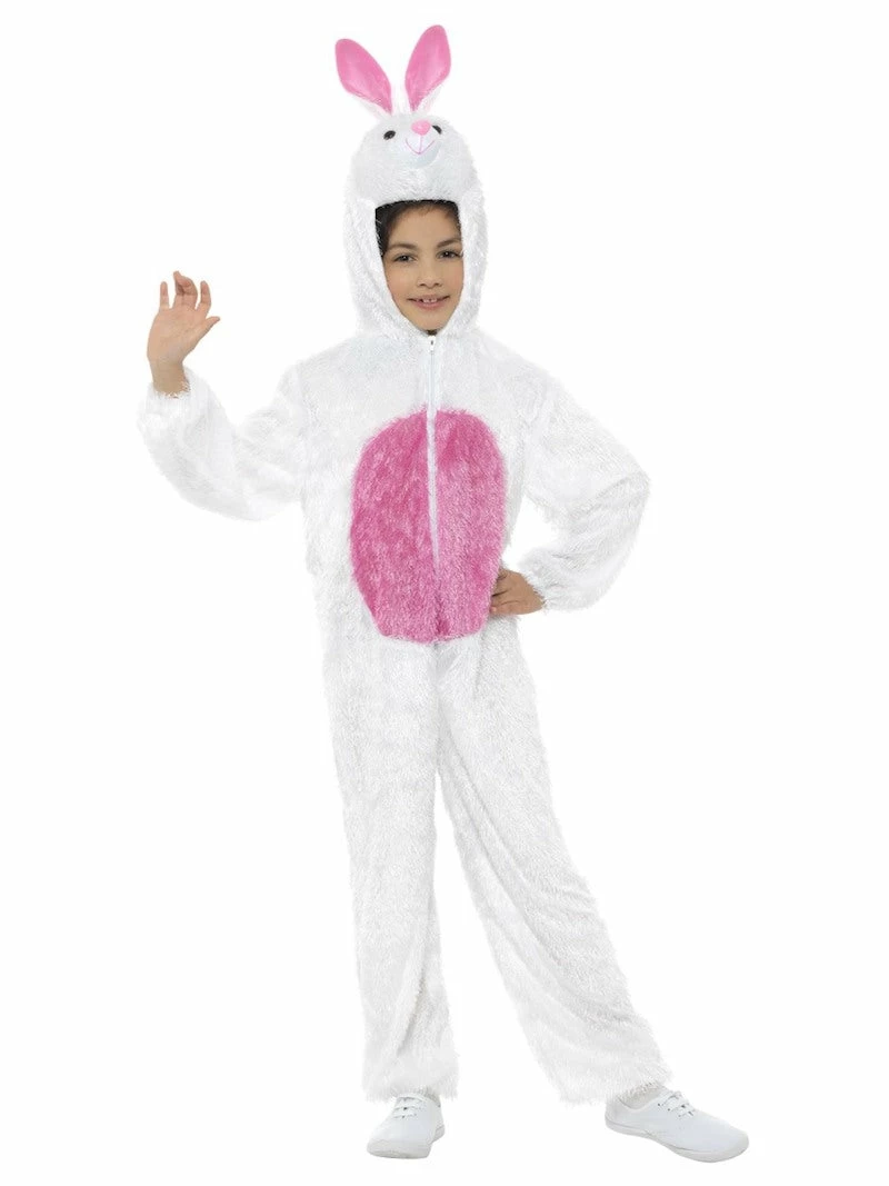 Hop-along to the party wearing our white and pink Bunny Costume which includes a jumpsuit with hood.