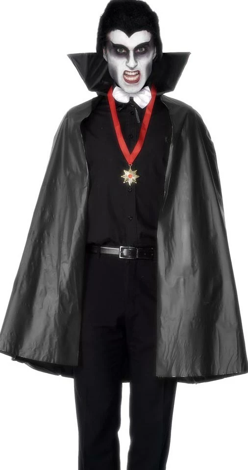 Our Black PVC Vampire Cape with Stand Up Collar is perfect for the halloween look this halloween.