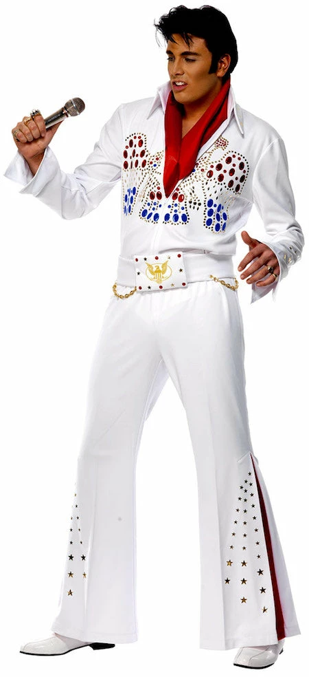 Get rocking and rolling in this adult Elvis American Eagle costume in white.