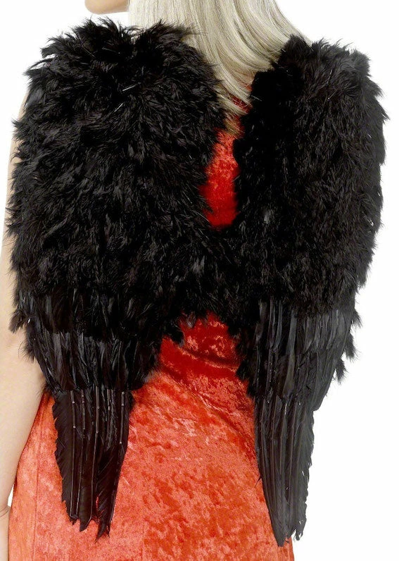 Our Extra Large, Black Feathered Angel Wings are a great Halloween accessory.