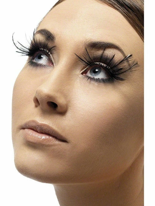 These Fever, Black Eyelashes with Feather Plumes are easy to apply and are an eye catching accessory. The box contains eyelash glue and can be re-used.