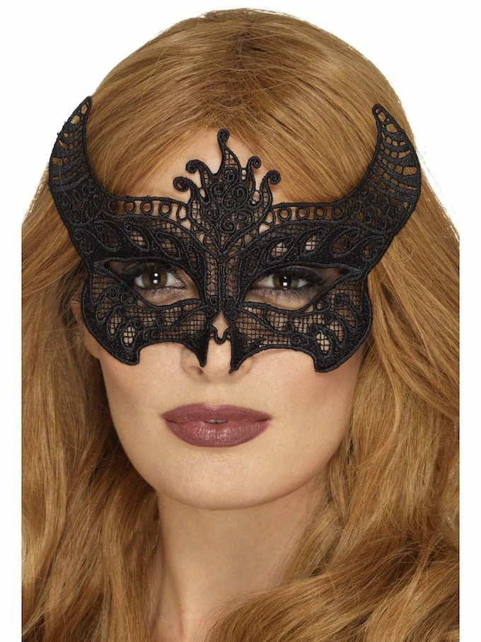 Our Black embroidered lace Devil filigree masquerade mask is perfect for any ball or simply to add the finishing touch to your halloween costume.