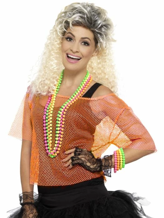 Neon orange fishnet top, perfect for a rave, or for an 80’s outfit