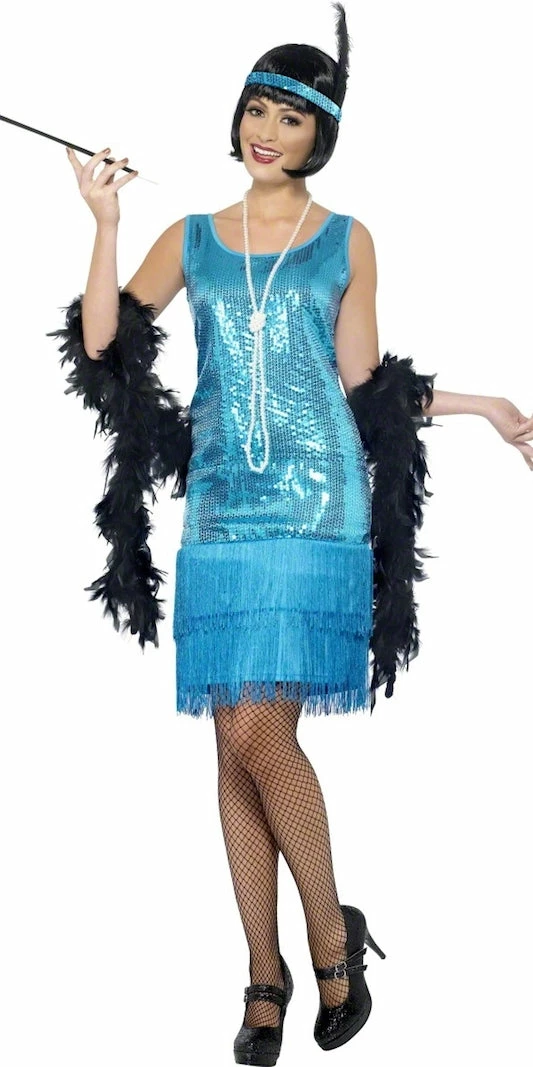 Take it back to the roaring 1920’s with our Teal, Flirty Flapper costume.