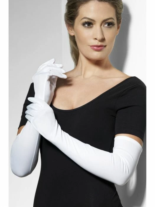 These long white jersey fabric gloves measure 52cm (20.5″)