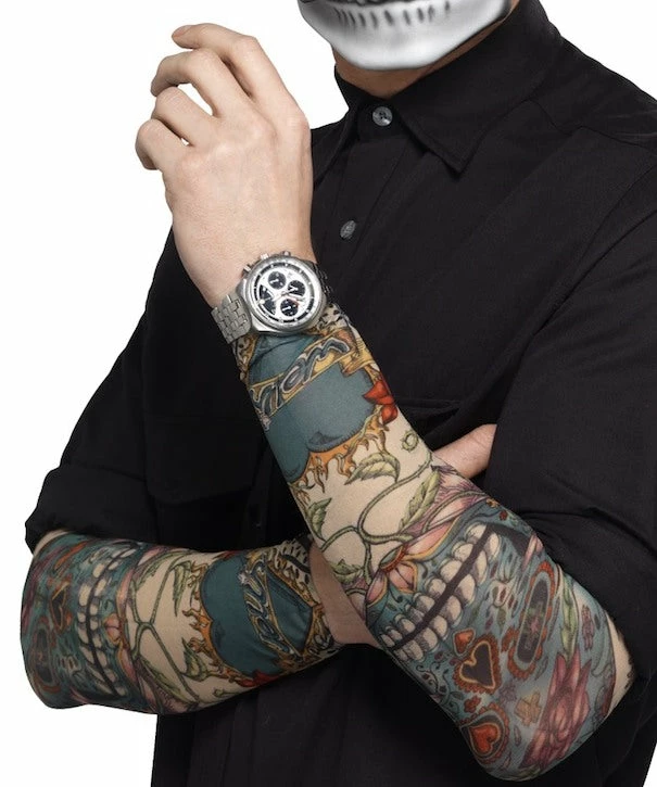 Complete your Day of the Dead costume with this realistic looking tattoo sleeve.