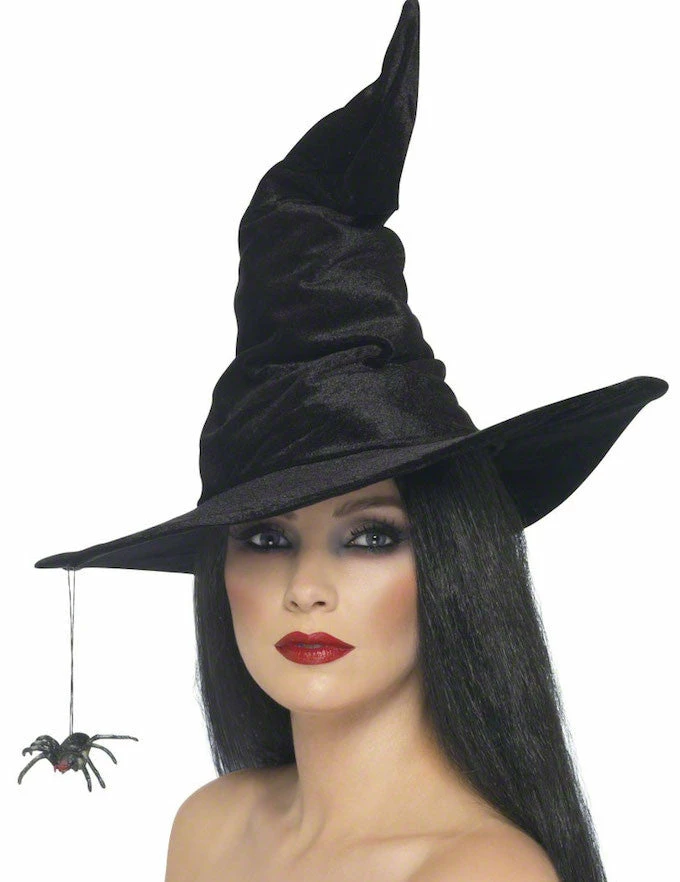 Our Black Velour Witch Hat with Hanging Spider is perfect to complete your halloween costume.