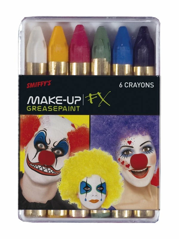 Perfect for little make up tasks, these 6 grease, face and body crayons are supplied in white, yellow, red, green, blue and black.
