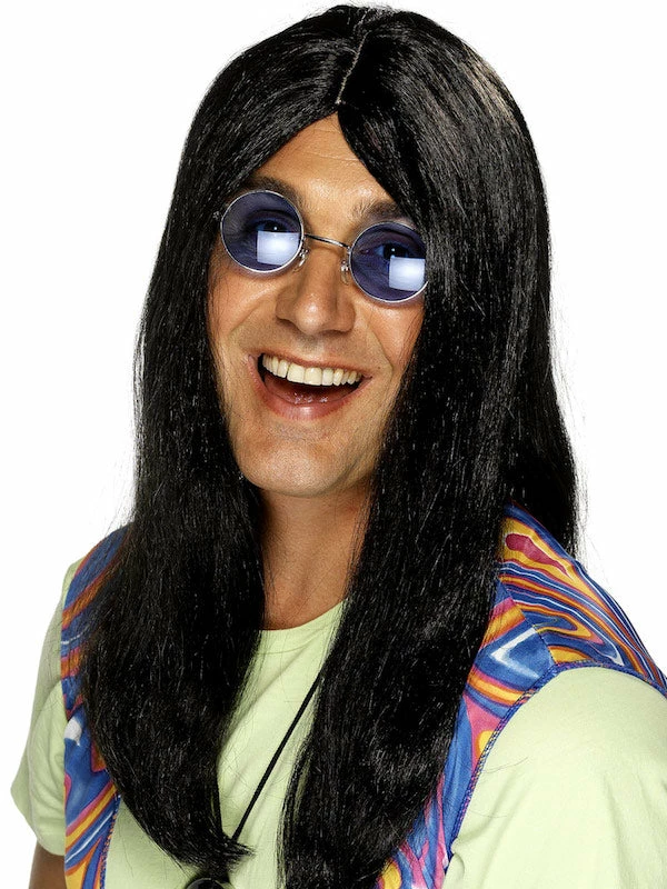 Our 60’s Black Neil Hippy Wig, has a realistic skin parting – ideal for 60s and 70s hippie style costumes.