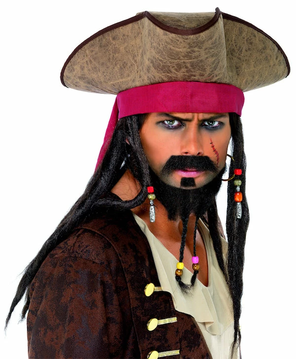 Our Brown Pirate Hat includes Dreadlocks, perfect for the Caribbean Pirate look.