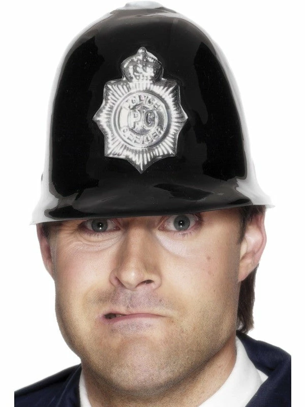 This black plastic police helmet is a great cheap and cheerful quick fix fancy dress accessory, perfect for police or uniform themed fancy dress.