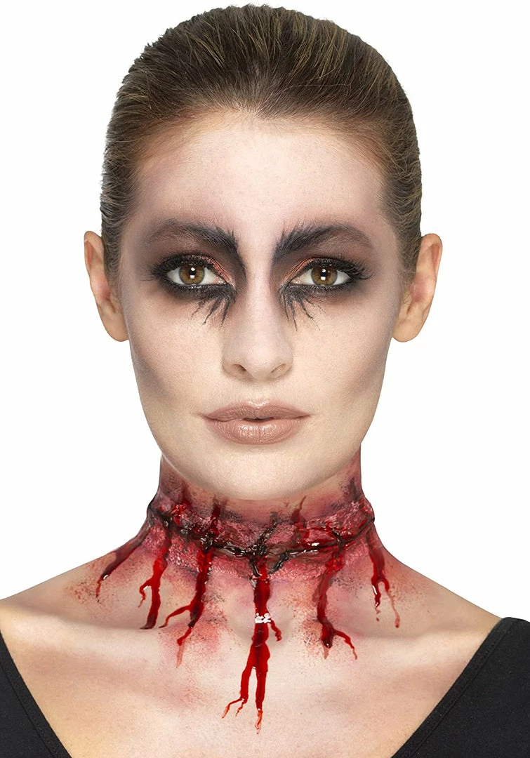 Our Latex, Stitched Neck Scar Prosthetic is realistic and very effective, perfect for Halloween.