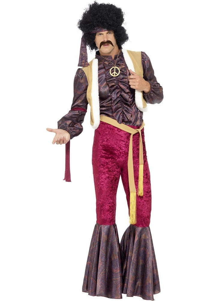 Our Psychedelic Rocker costume is great for a 60’s -70’s themed party! Includes Flares, Top with Attached Waistcoat and Headpiece.