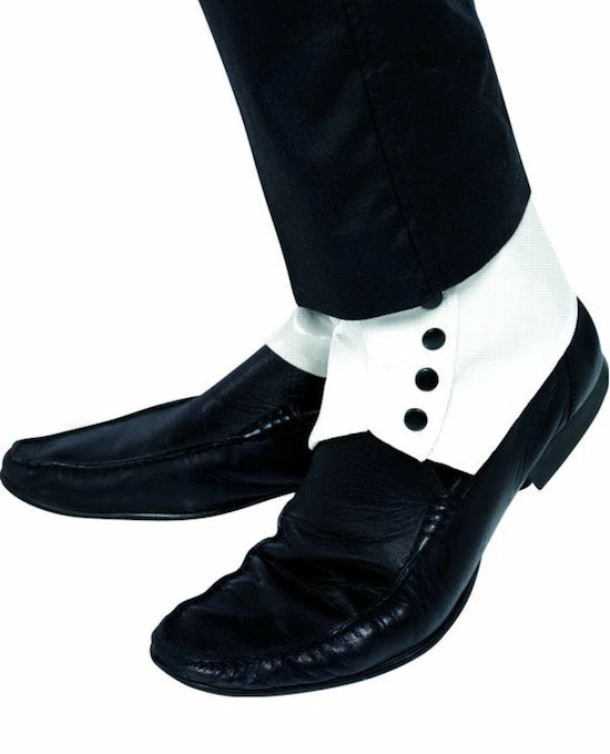 White pvc spats with black buttons.