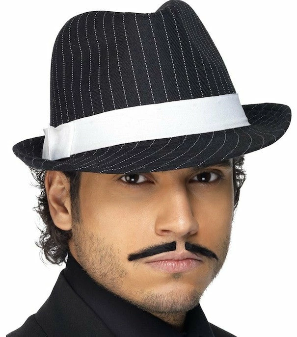 Our Deluxe Black & White Trilby Hat with Pinstripe and White Band will add a touch of class to your Gangster Costume.