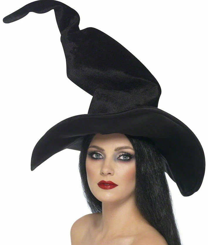 Our Tall and Twisty Witch Hat in Black Velour is perfect to complete your Halloween Costume.