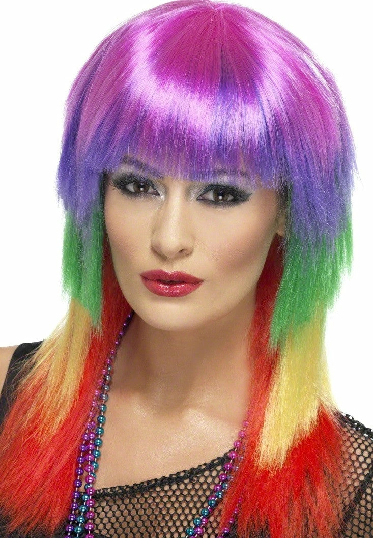 Our Rainbow Rocker Wig is perfect for giving you that edgy look to your rocker costume as well as make you stand out.